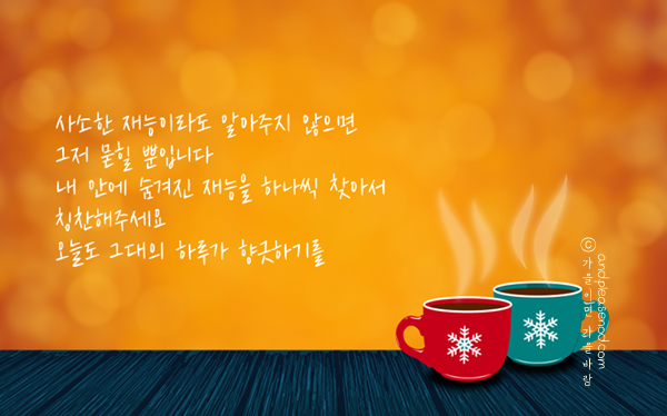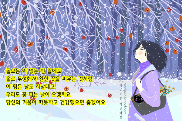 어느덧 올해도 마지막 달입니다. 12월은 마음이 부산스러우면서도 쓸쓸합니다. 힘든 삶 속에서도 희망 잃지 않고 아껴주심에 감사드립니다. 무탈한 연말이 되길 바라며, 한해 마무리 잘 하는 12월, 언제나 건강하세요.