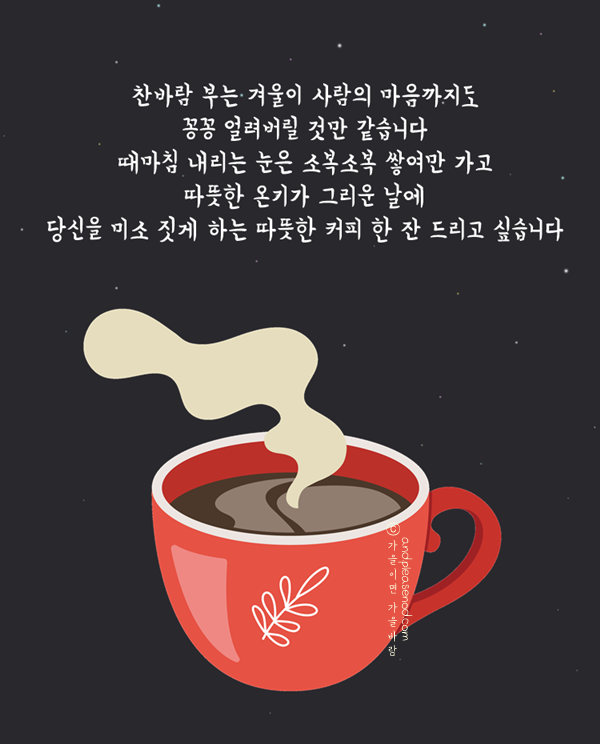 따스함이 그리워지는 겨울이 되었습니다. 다정한 미소와 사랑을 나눌 수 있는 훈훈한 하루하루, 건강한 12월 보내시길 바랍니다. 연말연시 건강하고 무탈하며 기쁨이 가득하길 응원합니다.