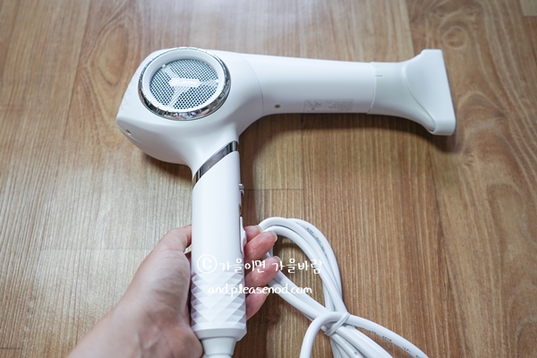 그럴 때는 헤어드라이기를 다른 손으로 옮겨서 머리를 말려주면 되구요. 어쨌거나 절대 가벼운 모델은 아닙니다. 간혹 상품평을 보면 팔이 떨어져나갈만큼 무겁다는 말이 있으나 그건 정말 과장된 표현이구요. 가벼운 모델을 사용했던 분들이라면 한 번에 무겁다는 느낌을 받을 수 있어요.